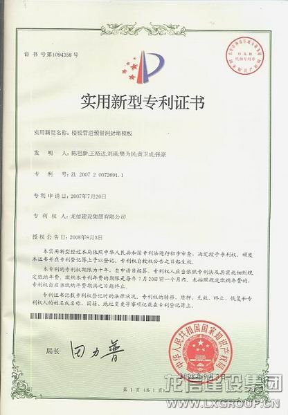 抹灰刀專利證書