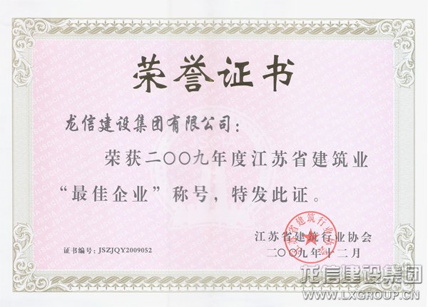 2009年度江蘇省建筑業(yè)質(zhì)量管理先進(jìn)單位