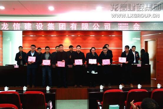 2018年2月21日正月初六,龍信集團五屆八次股東會暨八屆三次工代會、九屆三次職代會在龍信大廈20樓會議室隆重召開。龍信集團董事長陳祖新、總裁唐愛東、副董事長王裕達、董事江建明、管錦春、陳伯元、施賢、監事會主席袁云峰、股東、各板塊負責人、分子公司負責人、集團條線及部門負責人、工會代表、職工代表、受表彰人員等共計160余人出席會議。