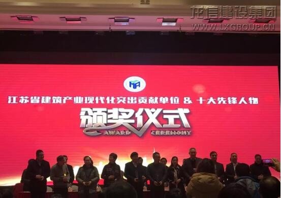 江蘇省建筑產業現代化創新聯盟韓建忠秘書長宣讀“突出貢獻單位”和“十大先鋒人物”表彰決定及頒獎。其中以龍信集團為首的20家企業榮獲“江蘇省建筑產業現代化突出貢獻單位”,龍信集團董事長陳祖新榮獲“十大先鋒人物”稱號。