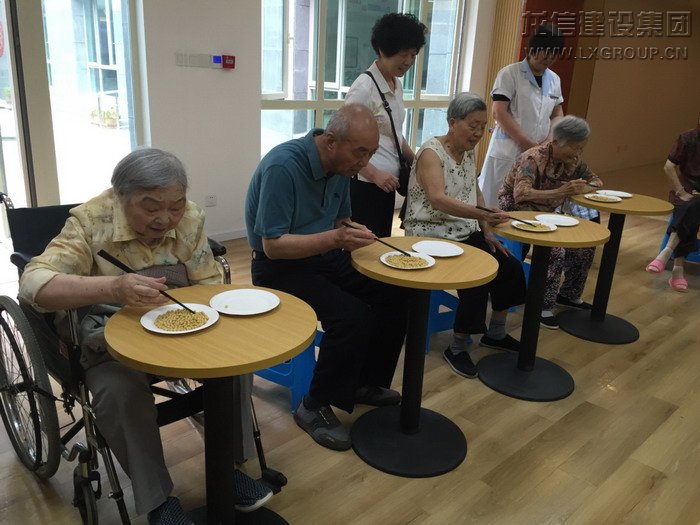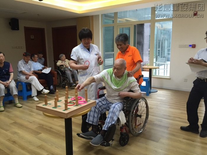 第二個比賽項目是快樂套圈。長者們認真的投擲著手中的套圈,為套中而欣喜,也為落空而遺憾。但是最幸福的事,不是你摘得了桂冠,而是看到你的臉上洋溢出許久未見的笑容。1301室的陳叔叔自中風后身體狀況一直不佳,平時的起居飲食需要保姆的照料,他坐著輪椅來到規定的比賽投擲線,用自己稍稍顫抖的右手接過套圈,當大家看到這樣的距離對他來說比較困難的時候,參賽的其他叔叔阿姨主動提出要為他縮短距離。在樂頤薈這個大家庭里,每一次活動,規則不重要,輸贏更不重要,重要的只有這彌足珍貴的鄰里情誼。當陳叔叔投中時,他笑了,這一笑溫暖了在場的所有人。最終,508室的俞阿姨、1101室的施叔叔、1301室的陸阿姨奪得了前三甲。