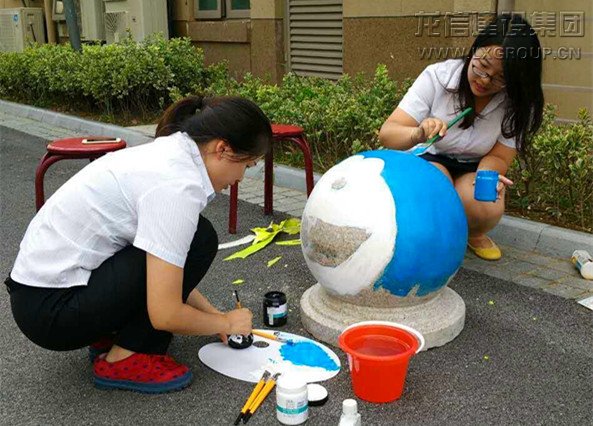 原來這是龍信物業開展的石球彩繪行動,旨在通過創意和彩繪,讓冷冰冰的石球煥發光彩,讓小區充滿生機與活力,詮釋龍信物業的特色服務。