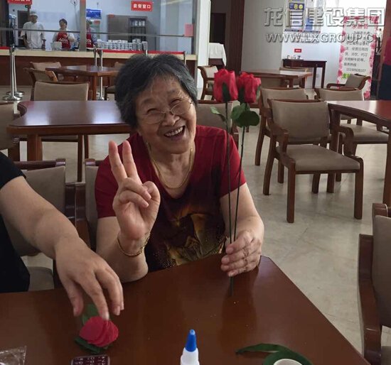 活動現場,工作人員為長者們準備了制作玫瑰花的材料,長者與工作人員合作,將零散的花瓣一片一片的粘貼在一起,漸漸地有了花的形狀,花瓣緊緊的圍繞著花蕊,好似一群孩童擁圍著媽媽。
