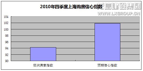 報(bào)告顯示,2010年四季度上海購房預(yù)期信心指數(shù)為101.8點(diǎn),高出購房現(xiàn)狀信心指數(shù)7.5點(diǎn)。業(yè)內(nèi)人士分析認(rèn)為,上海購房者預(yù)期信心高于現(xiàn)狀主要是出于對二次調(diào)控的看好。2010年9月29日、10月7日,中央、上海分別公布了新一輪樓市調(diào)控政策,出臺了包括限購限貸限外限價(jià)等四限政策。該業(yè)內(nèi)人士表示,正是出于對這一輪號稱史上最嚴(yán)厲調(diào)控效果的看好,促使購房者未來購房信心大增。